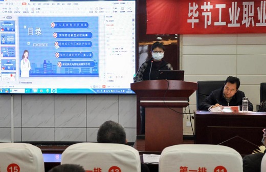 副院長(zhǎng)黃河就《畢節(jié)工業(yè)職業(yè)技術(shù)學(xué)院2020年開學(xué)工作方案》《畢節(jié)工業(yè)職業(yè)技術(shù)學(xué)院新冠疫情防控工作方案》《畢節(jié)工業(yè)職業(yè)技術(shù)學(xué)院新冠疫情防控應(yīng)急預(yù)案》進(jìn)行解讀,要求加強(qiáng)組織管理和統(tǒng)籌調(diào)度,建立健全上下一體聯(lián)動(dòng)機(jī)制,明確職責(zé)分工,確保新學(xué)期開學(xué)疫情防控策略和應(yīng)急處置措施扎實(shí)有效實(shí)施。