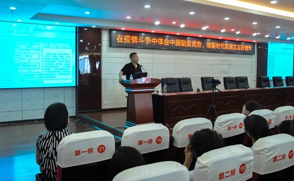 為加強(qiáng)學(xué)院思想政治工作,著力培養(yǎng)擔(dān)當(dāng)民族復(fù)興大任的時(shí)代新人,幫助青年學(xué)生從情感認(rèn)知升華為理性思考,進(jìn)一步增強(qiáng)打贏疫情防控阻擊戰(zhàn)的信心決心,2020年5月8日上午,學(xué)院黨委副書記、院長邱國援為首批返回校園的學(xué)生上了一堂以“在疫情斗爭中體會(huì)中國制度優(yōu)勢,做新時(shí)代愛國立志好青年”為主題的思政課。