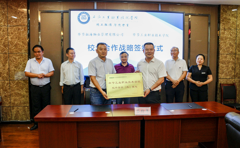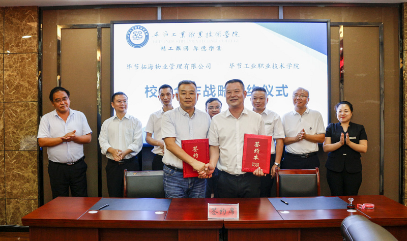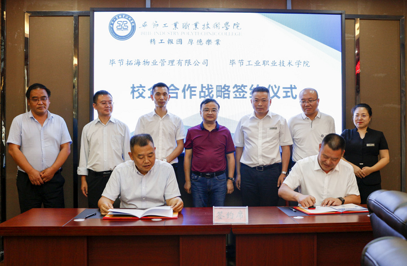 為深入貫徹落實習近平總書記對技能人才工作重要指示精神,切實做好新時代技能人才工作,9月3日,畢節(jié)拓海物業(yè)管理有限公司與畢節(jié)工業(yè)職業(yè)技術學院校企合作戰(zhàn)略協(xié)議簽訂儀式在學院同心樓三樓會議室舉行。畢節(jié)拓海物業(yè)管理有限公司總經(jīng)理楊月強、常務副總經(jīng)理邱鋒一行,學院黨委書記李涌,黨委副書記、院長邱國援,黨委委員、副院長吳家文、相關部門負責人及教師代表出席儀式。簽約儀式由邱國援主持。