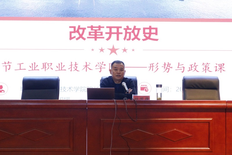 10月19日下午我院院長邱國援以“改革開放史”為主題在會議中心給畢節(jié)工業(yè)職業(yè)技術(shù)學(xué)院2020級學(xué)生上了一堂精彩紛呈的《形勢與政策》課。