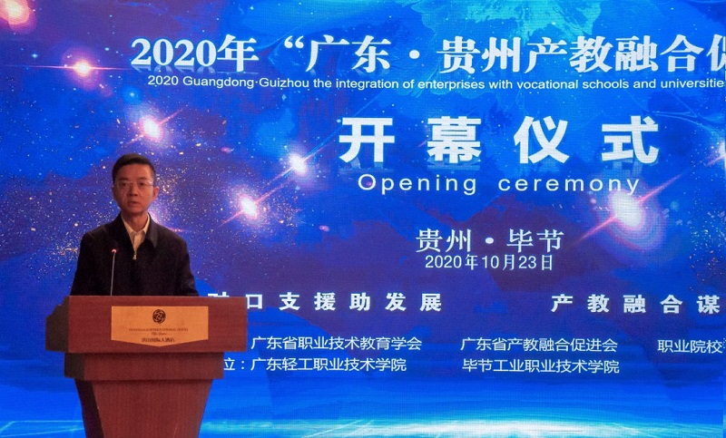廣東輕工職業(yè)技術(shù)學(xué)院黨委書記杜安國表示,落實(shí)廣黔結(jié)對(duì)幫扶舉措,發(fā)揮企業(yè)與教育的互促力量,在廣東·貴州產(chǎn)教融合促進(jìn)大會(huì)的廣闊平臺(tái)上,為校企合作牽線搭橋,共同建立長期緊密的合作關(guān)系,促進(jìn)職業(yè)教育高質(zhì)量發(fā)展,實(shí)現(xiàn)職教幫扶促發(fā)展,產(chǎn)教融合謀新篇。