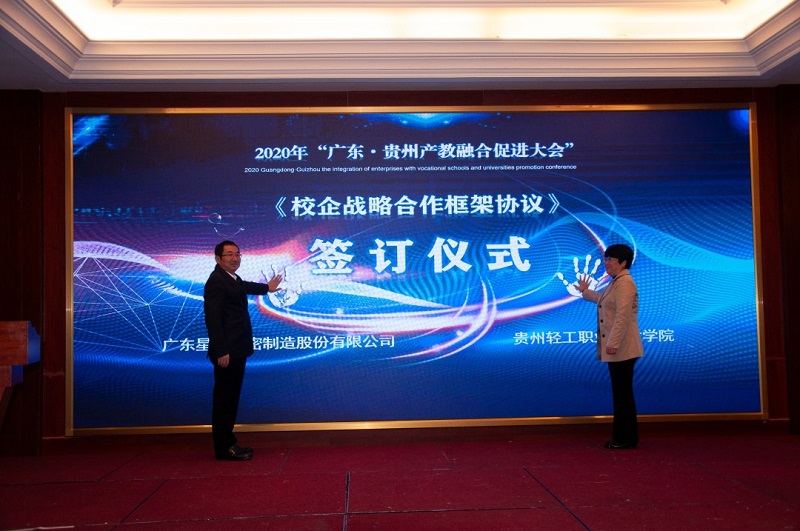 會(huì)上,廣東省向貴州職業(yè)院校捐贈(zèng)阿里云智慧校園3.0系統(tǒng),廣州市億科計(jì)算機(jī)公司向畢節(jié)工業(yè)職業(yè)技術(shù)學(xué)院捐贈(zèng)智慧黨建系統(tǒng);相關(guān)企業(yè)與院校簽訂人才專業(yè)培養(yǎng)、訂單班、校企戰(zhàn)略合作、產(chǎn)教融合項(xiàng)目20余項(xiàng)。廣東星徽精密制造股份有限公司代表參會(huì)企業(yè)進(jìn)行發(fā)言,10余家企業(yè)進(jìn)行了產(chǎn)教融合案例分享。