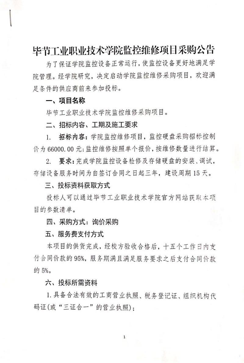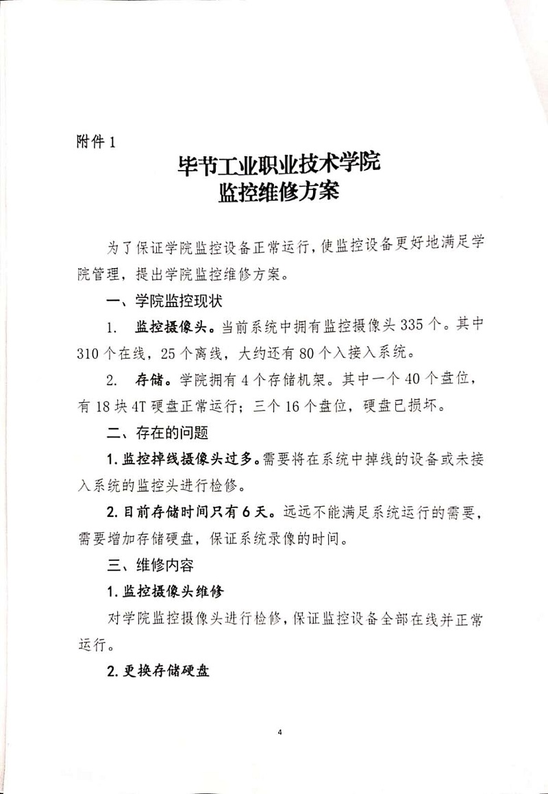 畢節(jié)工業(yè)職業(yè)技術(shù)學(xué)院監(jiān)控維修項目采購公告