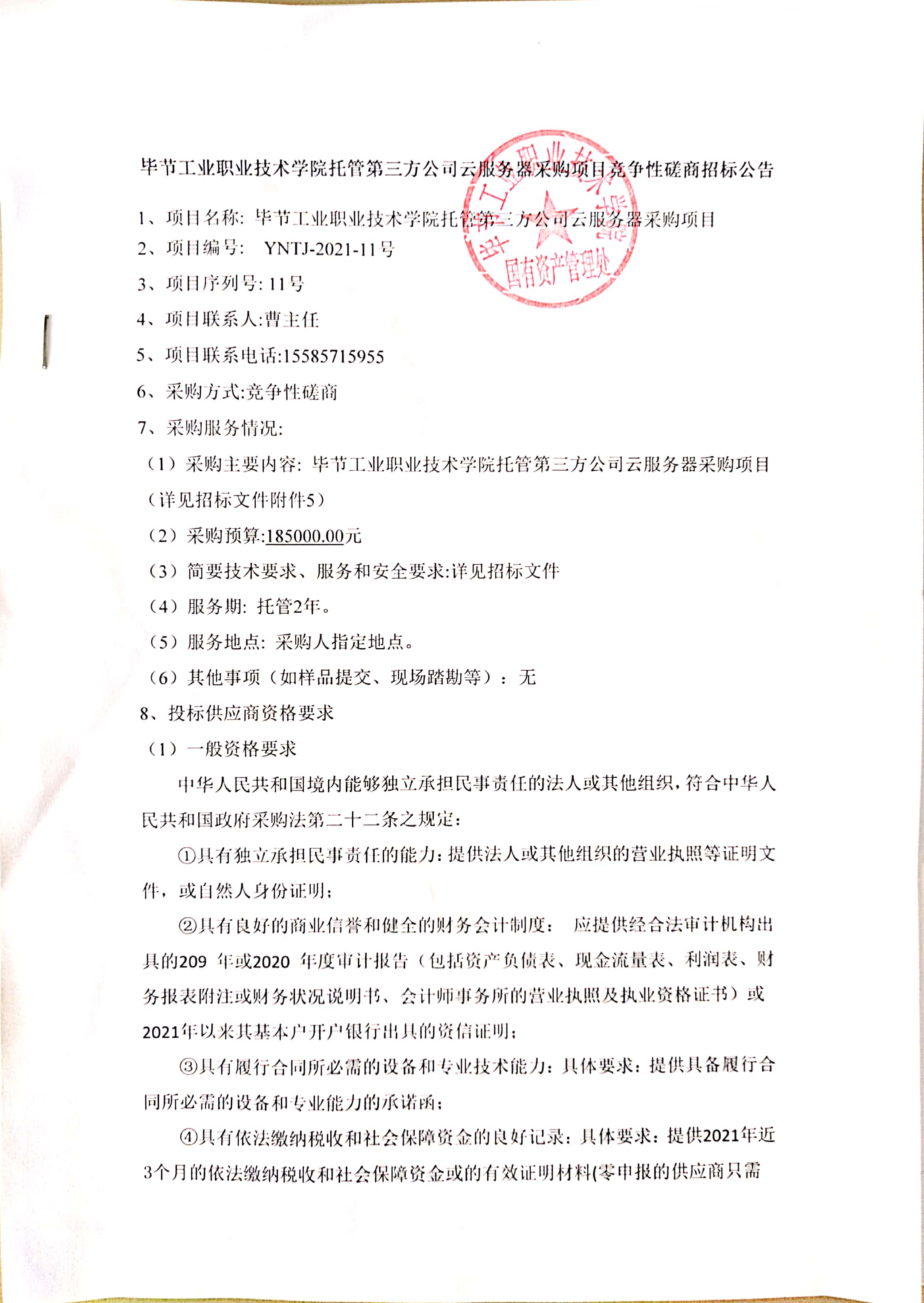 畢節(jié)工業(yè)職業(yè)技術學院托管第三方公司云服務器采購項目競爭性磋商招標公告