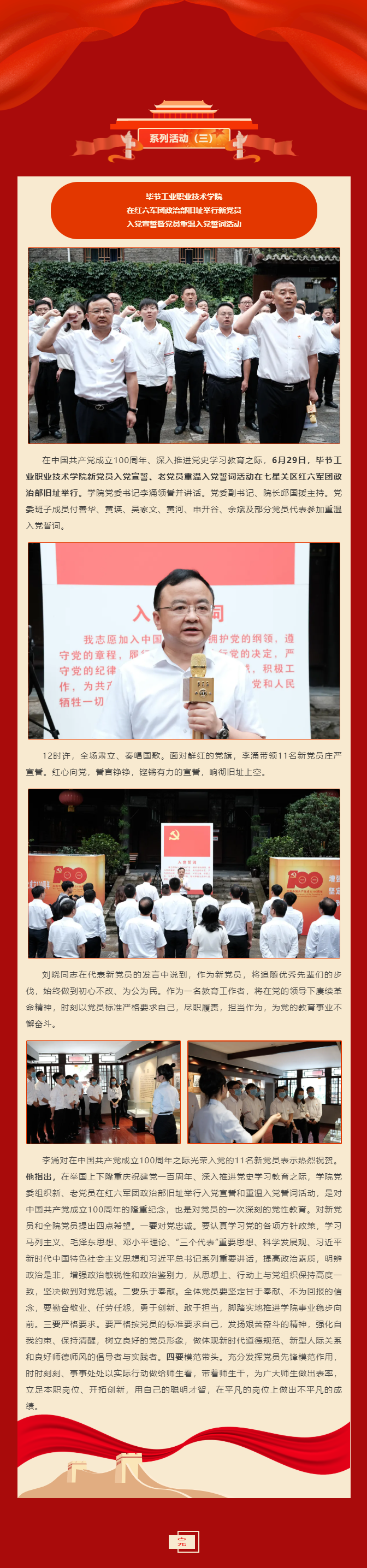 慶祝建黨100周年系列活動(三) | 畢節(jié)工業(yè)職業(yè)技術(shù)學(xué)院在紅六軍團(tuán)政治部舊址舉行新黨員入黨宣誓暨黨員重溫入黨誓詞活動