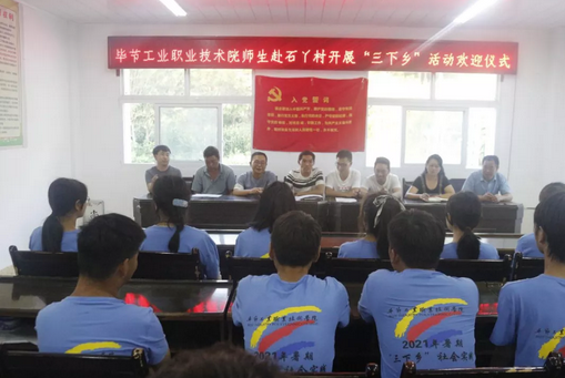 ▲畢節(jié)工業(yè)職業(yè)技術(shù)學(xué)院師生赴石丫村開展“三下鄉(xiāng)”活動(dòng)歡迎儀式暨村干部為實(shí)踐隊(duì)員上入村第一課