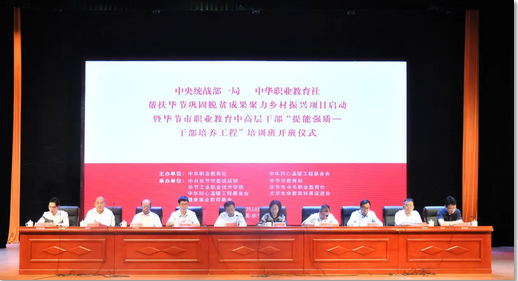 2021年7月18日上午,中央統(tǒng)戰(zhàn)部、中華職業(yè)教育社幫扶畢節(jié)鞏固脫貧成果聚力鄉(xiāng)村振興項目啟動暨畢節(jié)市職業(yè)教育中高層干部“提能強質(zhì)——干部培養(yǎng)工程”培訓(xùn)班開班儀式在我院會議中心舉行。