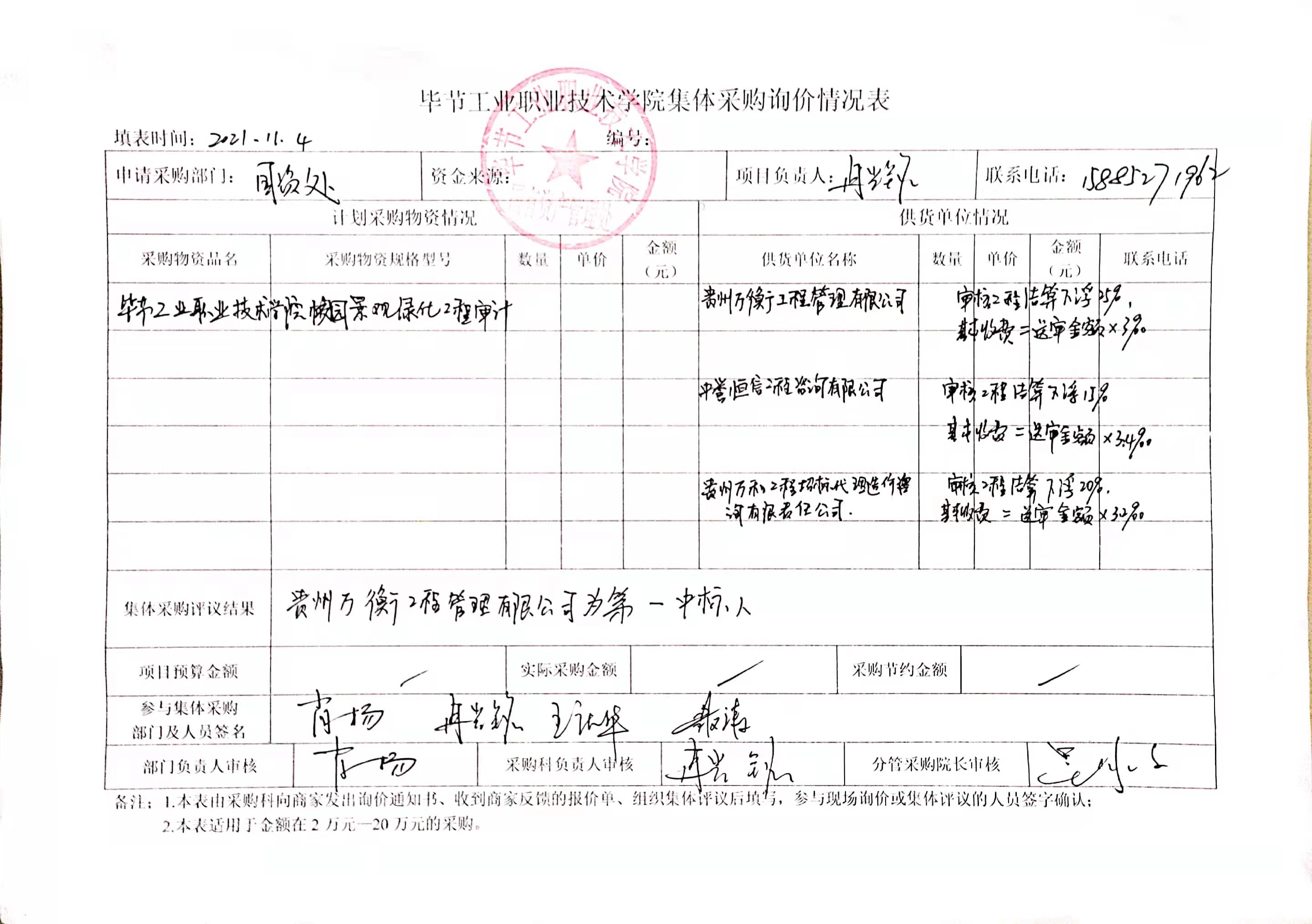 畢節(jié)工業(yè)職業(yè)技術(shù)學(xué)院校園景觀綠化工程審計(jì)中標(biāo)公告