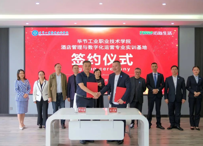 5月12日,畢節(jié)工業(yè)職業(yè)技術(shù)學(xué)院拓海學(xué)院一周年成立儀式暨畢節(jié)工業(yè)職業(yè)技術(shù)學(xué)院酒店管理與數(shù)字化運(yùn)營(yíng)專(zhuān)業(yè)實(shí)訓(xùn)基地簽約儀式在拓海學(xué)院會(huì)議室舉行。學(xué)院黨委副書(shū)記、院長(zhǎng)邱國(guó)援,黨委委員、副院長(zhǎng)黃瑛、黃河、吳家文、黃文碧,拓海學(xué)院名譽(yù)院長(zhǎng)、拓海生活集團(tuán)總裁楊月強(qiáng),拓海學(xué)院院長(zhǎng)林彬出席儀式,拓海集團(tuán)相關(guān)領(lǐng)導(dǎo)、員工代表及學(xué)院社會(huì)服務(wù)系師生代表參加儀式。 儀式現(xiàn)場(chǎng) 邱國(guó)援在致辭中指出,校企雙方共建拓海學(xué)院實(shí)訓(xùn)基地,為相關(guān)專(zhuān)業(yè)學(xué)生提供了理實(shí)一體化教學(xué)場(chǎng)地和實(shí)習(xí)實(shí)訓(xùn)平臺(tái),改善了物業(yè)管理、酒店管理等專(zhuān)業(yè)的教學(xué)、實(shí)訓(xùn)條件,使我院辦學(xué)條件、人才培養(yǎng)體系和教學(xué)質(zhì)量得到不斷提高。同時(shí),拓海集團(tuán)積極參與物業(yè)管理專(zhuān)業(yè)人才培養(yǎng)方案修訂,從行業(yè)、企業(yè)角度提出了很多人才培養(yǎng)的意見(jiàn)建議,邀請(qǐng)行業(yè)專(zhuān)家來(lái)校講學(xué),親自授課,使學(xué)生專(zhuān)業(yè)知識(shí)得到有力提升,使物業(yè)管理專(zhuān)業(yè)人才培養(yǎng)體系更加符合行業(yè)需求。下一步,希望校企雙方繼續(xù)深化校企合作機(jī)制、持續(xù)擴(kuò)大合作范圍、協(xié)同提升合作質(zhì)量,充分發(fā)揮拓海生活服務(wù)集團(tuán)在物業(yè)管理方面的專(zhuān)業(yè)優(yōu)勢(shì),在人才培養(yǎng)方案、課程教學(xué)、實(shí)習(xí)實(shí)訓(xùn)、教師培養(yǎng)等方面提供企業(yè)建議和技術(shù)指導(dǎo),在教育教學(xué)、學(xué)生管理、素質(zhì)培養(yǎng)、技能提升等方面與學(xué)院交換經(jīng)驗(yàn),提升教師專(zhuān)業(yè)素質(zhì),強(qiáng)化學(xué)生技能提升,推進(jìn)“工學(xué)結(jié)合”教學(xué)模式,共同提高學(xué)院育人質(zhì)量。 邱國(guó)援在儀式上致辭 楊月強(qiáng)表示,過(guò)去一年,校企雙方本著優(yōu)勢(shì)互補(bǔ)、資源共享、互惠雙贏(yíng)、共同發(fā)展的原則,對(duì)校企合作模式進(jìn)行了深層次的探索、創(chuàng)新與實(shí)踐,拓海學(xué)院的成立不僅推動(dòng)了產(chǎn)教融合,也為學(xué)生提供了優(yōu)質(zhì)的實(shí)訓(xùn)基地,為企業(yè)提供了強(qiáng)有力的人才保障。下一步,企業(yè)將繼續(xù)聯(lián)手學(xué)院不斷創(chuàng)新,共同培養(yǎng)高素質(zhì)技術(shù)技能型人才,構(gòu)建校企合作雙贏(yíng)局面,助推職業(yè)教育改革和地方經(jīng)濟(jì)社會(huì)高質(zhì)量發(fā)展。 楊月強(qiáng)在儀式上講話(huà) 儀式上,邱國(guó)援代表學(xué)院與拓海生活集團(tuán)簽訂了《畢節(jié)工業(yè)職業(yè)技術(shù)學(xué)院酒店管理與數(shù)字化運(yùn)營(yíng)專(zhuān)業(yè)實(shí)訓(xùn)基地(中心)建設(shè)合作協(xié)議》。學(xué)院與拓海生活集團(tuán)將再次攜手,共建畢節(jié)工業(yè)職業(yè)技術(shù)學(xué)院酒店管理與數(shù)字化運(yùn)營(yíng)專(zhuān)業(yè)實(shí)訓(xùn)基地,共同承擔(dān)科研項(xiàng)目、實(shí)現(xiàn)信息共享,培養(yǎng)更多高質(zhì)量的技能人才,為畢節(jié)全面推進(jìn)鄉(xiāng)村振興提供有力的人才支撐。 簽約儀式現(xiàn)場(chǎng) 拓海學(xué)院院長(zhǎng)林斌、社會(huì)服務(wù)系主任呂振欣為優(yōu)秀學(xué)生羅達(dá)麗、李定奎頒發(fā)榮譽(yù)證書(shū) 優(yōu)秀學(xué)生代表羅達(dá)麗發(fā)言 儀式中的精彩節(jié)目