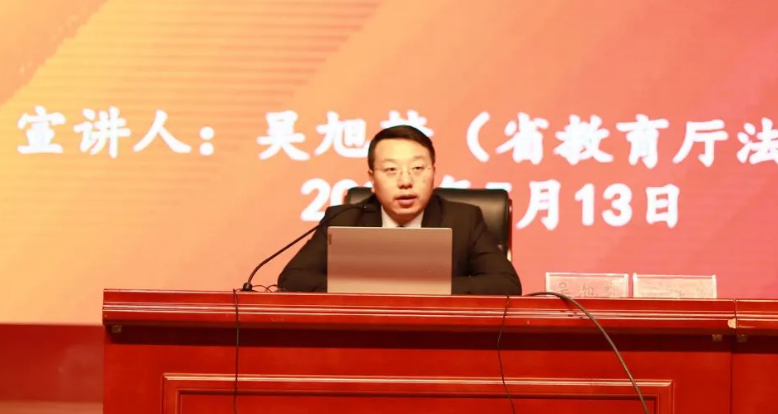 5月13日下午,畢節(jié)工業(yè)職業(yè)技術(shù)學(xué)院邀請省教育廳法律顧問吳旭夢博士在學(xué)院會(huì)議中心開展習(xí)近平法治思想專題宣講,黨委委員、宣傳統(tǒng)戰(zhàn)部部長余斌主持宣講,學(xué)院300余名師生參加學(xué)習(xí)。