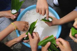 端午節(jié)吃粽子是自古流傳至今的習(xí)俗,其中除了紀(jì)念作用以外,還包含了人們的美好愿景。信息工程系組織師生在跨境電商學(xué)院開(kāi)展了“一粽濃情·一粽鄉(xiāng)愁”主題活動(dòng)?;顒?dòng)現(xiàn)場(chǎng),在老師的帶領(lǐng)下,同學(xué)們親自動(dòng)手制作粽子,卷葉、填餡、封口,有條不紊、巧手翻飛,忙的不亦樂(lè)乎,甜的、咸的,各種口味,讓現(xiàn)場(chǎng)師生一飽口福,大家在包粽子的過(guò)程中親身感受了端午文化,增進(jìn)了師生間的情誼。