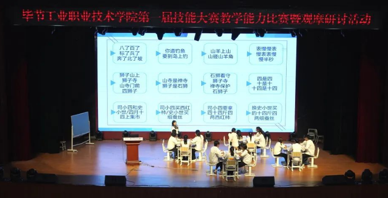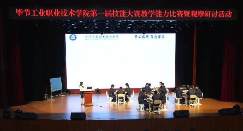 2022年6月29日,畢節(jié)工業(yè)職業(yè)技術(shù)學(xué)院第一屆技能大賽教學(xué)能力比賽在會議中心圓滿舉行。此次競賽以提升教師的教學(xué)能力為主旨,力求讓我院教師進一步樹立先進教育教學(xué)理念,應(yīng)用現(xiàn)代教學(xué)方法,堅持知識傳授、能力培養(yǎng)與價值教育相結(jié)合,助推學(xué)院高質(zhì)量內(nèi)涵式發(fā)展。