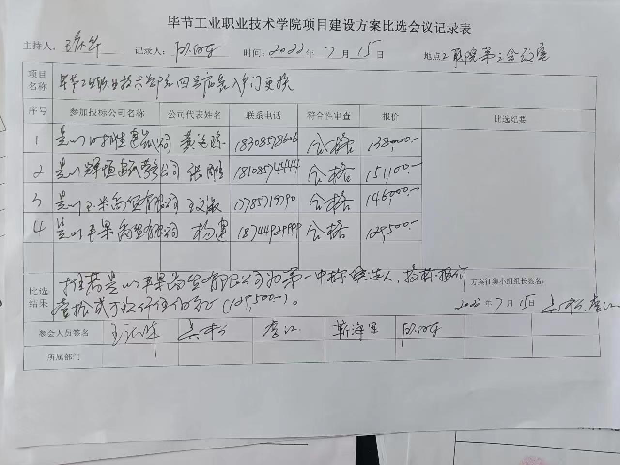 畢節(jié)工業(yè)職業(yè)技術(shù)學(xué)院四號宿舍入戶門更換比選結(jié)果公示