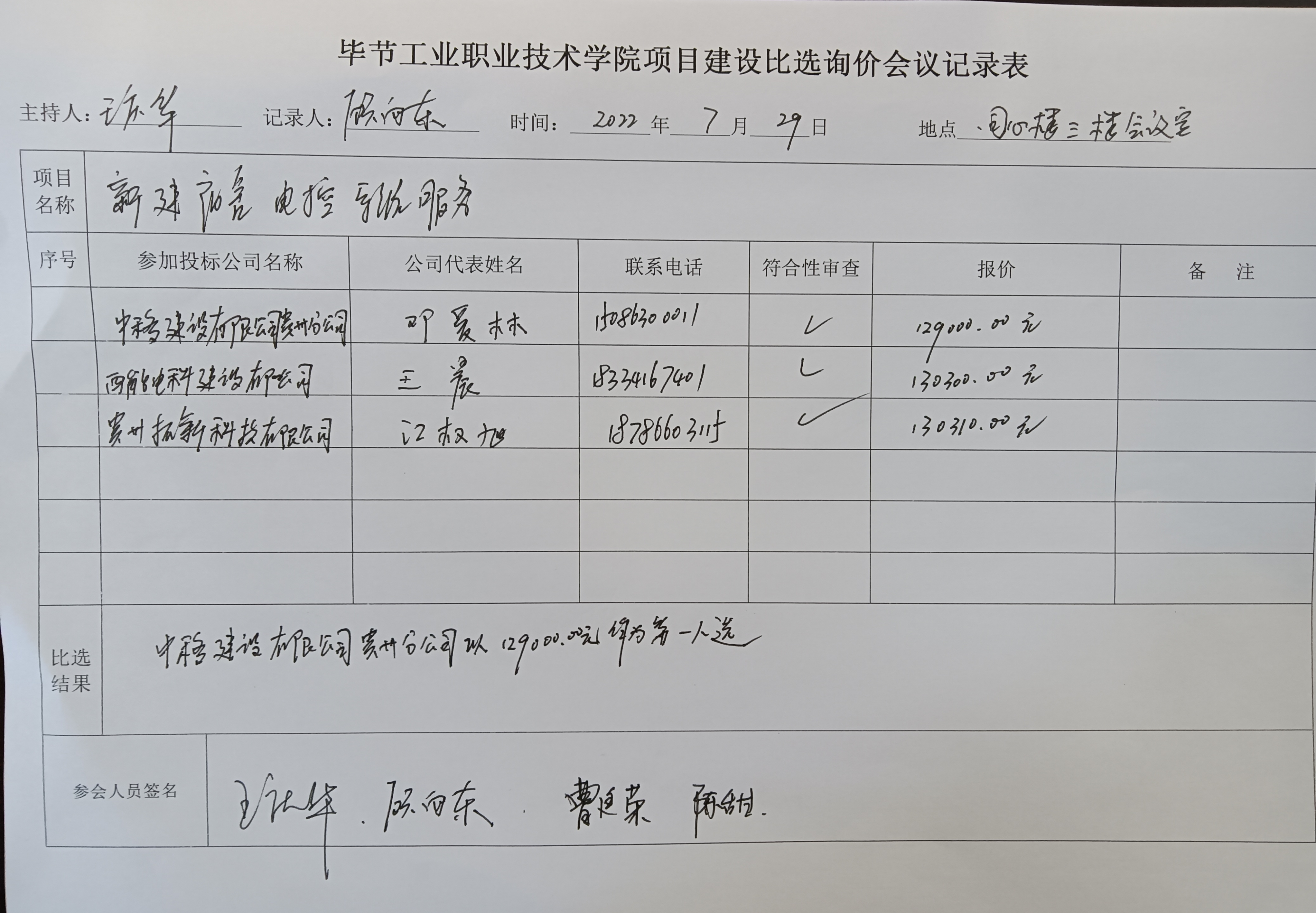 畢節(jié)工業(yè)職業(yè)技術(shù)學(xué)院新建學(xué)生宿舍樓電控系統(tǒng)服務(wù)詢價(jià)結(jié)果公示
