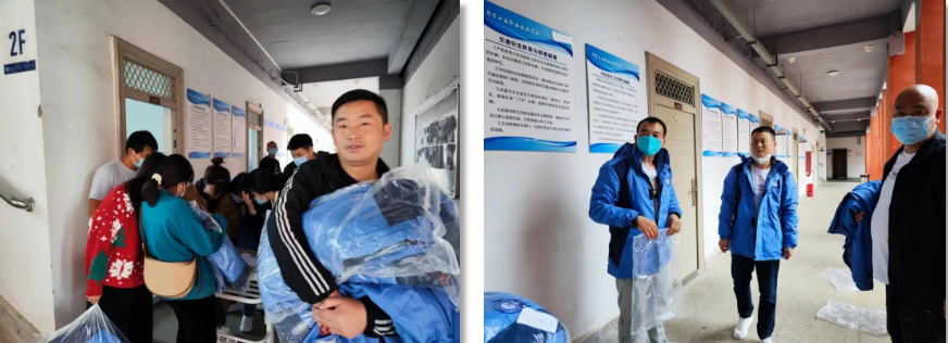 當(dāng)實施靜默管理后,我院80余名教職工連夜趕回學(xué)校,他們勇毅逆行、不畏風(fēng)險,義無反顧地奮戰(zhàn)在抗擊疫情的一線,他們不僅為全院師生帶來感動,更為疫情防控注入必勝的決心。由于時間緊、任務(wù)重,他們大多數(shù)來得匆忙,恰遇氣溫驟降,教職工們著裝單薄、無換洗衣物便成了大問題。桐城市創(chuàng)意服裝有限公司得知情況后,立即決定將為22級新生準(zhǔn)備的校服中拿出沖鋒衣80余件無償捐獻(xiàn)給學(xué)院抗疫一線教職工保暖所用。