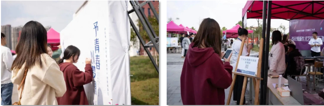 11月7日,學(xué)院開展了為期一天的社團(tuán)招新活動。穿梭在各個社團(tuán)之間,你會看到精妙絕倫的攝影作品、栩栩如生的繪畫和互相切磋棋藝的同學(xué)們;“是的我看見到處是陽光,快樂在校園上空飄揚”,聽!這是電聲社傳來的動聽歌聲……各種各樣吸引人的社團(tuán)讓現(xiàn)場的小萌新們心動不已。 (社團(tuán)招新現(xiàn)場) 社團(tuán)招新現(xiàn)場如火如荼,大家都樂此不疲,充滿了歡聲笑語。為了讓快樂加倍,讓歡笑加倍,學(xué)院還為大家準(zhǔn)備了黨的二十大答題闖關(guān)、新生才藝展示、予青春以夢想青春寄語等豐富多彩的現(xiàn)場活動。 ( 二十大答題闖關(guān)、青春寄語活動 ) ( 新生才藝展示活動 ) 光陰似箭,在最后一個才藝展示節(jié)目結(jié)束的歡呼聲中,學(xué)院的社團(tuán)招新活動完美落幕,相信大家也都找到了自己心儀的社團(tuán),在以后的時間里,相信大家都能在自己的社團(tuán)學(xué)到知識,提高自身的能力。 (社團(tuán)風(fēng)采) 一千句招新文案,都不及你的出現(xiàn)。在未來的日子里,期待能與大家一同前行,成就多彩人生,譜寫屬于我們的青春華章。也祝大家在未來三年都擁有一個豐富多彩的大學(xué)生活!