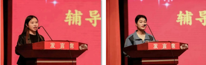 (輔導(dǎo)員代表付琴、助理輔導(dǎo)員代表張莉發(fā)言)