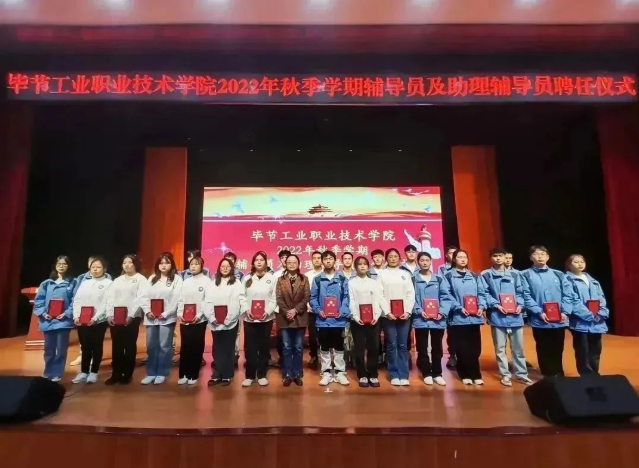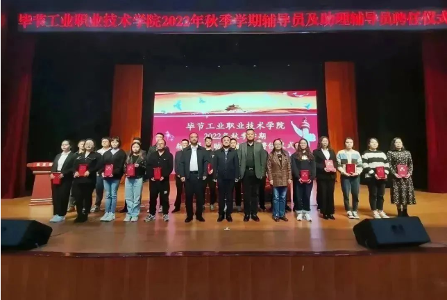 2022年11月10日,畢節(jié)工業(yè)職業(yè)技術(shù)學(xué)院輔導(dǎo)員及助理輔導(dǎo)員聘任儀式在會(huì)議中心舉行。學(xué)院黨委書記李涌,黨委副書記、院長邱國援,黨委副書記付善華,黨委委員、副院長黃文碧出席會(huì)議。會(huì)議由黃文碧主持。
