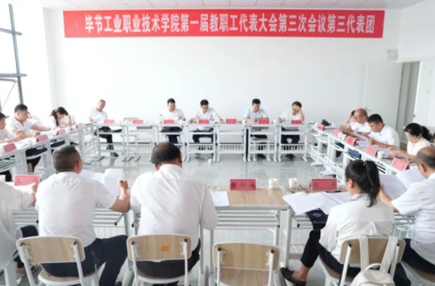 大會還聽取了《畢節(jié)工業(yè)職業(yè)技術(shù)學(xué)院2022年財(cái)務(wù)預(yù)算執(zhí)行情況和2023年財(cái)務(wù)預(yù)算情況報(bào)告》《畢節(jié)工業(yè)職業(yè)技術(shù)學(xué)院工會工作報(bào)告》《畢節(jié)工業(yè)職業(yè)技術(shù)學(xué)院第一屆第二次教職工代表大會提案落實(shí)情況及第一屆第三次教職工代表大會提案征情況報(bào)告》,審議了《畢節(jié)工業(yè)職業(yè)技術(shù)學(xué)院專業(yè)技術(shù)職務(wù)評聘管理暫行辦法》《畢節(jié)工業(yè)職業(yè)技術(shù)學(xué)院年度部門綜合考核實(shí)施方案》。期間,三個代表團(tuán)與會代表紛紛以高度的責(zé)任感和飽滿的主人翁精神,緊緊圍繞中心工作,對大會相關(guān)《報(bào)告》《辦法》《方案》及相關(guān)《決議(草案)》進(jìn)行認(rèn)真討論和審議,提出修改意見和建議,積極為學(xué)院發(fā)展建言獻(xiàn)策。