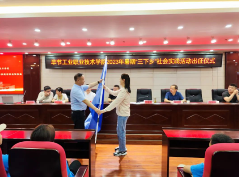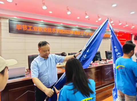 黃河宣讀了《畢節(jié)工業(yè)職業(yè)技術(shù)學(xué)院2023年暑期“三下鄉(xiāng)”社會(huì)實(shí)踐活動(dòng)紀(jì)律安全守則》并做指導(dǎo)講話。