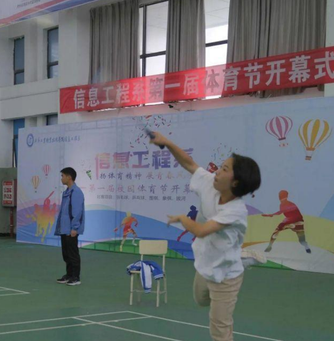 以活力激發(fā)潛能,以拼搏促進(jìn)提升,我系首屆體育節(jié)開幕式于6月9日下午在體育館隆重舉行。學(xué)院團(tuán)委負(fù)責(zé)人伍紹平、學(xué)生工作處負(fù)責(zé)人胡永祚、信息工程系負(fù)責(zé)人黃亞男、信息工程系學(xué)生科負(fù)責(zé)人鄭興、信息工程系教務(wù)科負(fù)責(zé)人曹婷鈺、信息工程系辦公室負(fù)責(zé)人胡建紅、棋類賽事特邀技術(shù)指導(dǎo)老師余廷斌等領(lǐng)導(dǎo)嘉賓蒞臨現(xiàn)場。