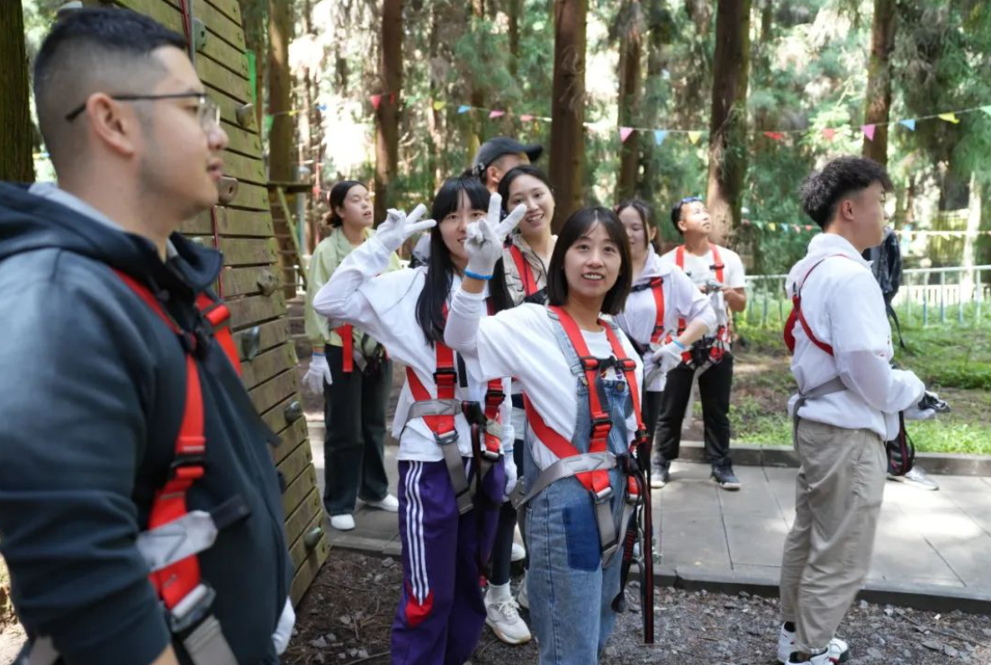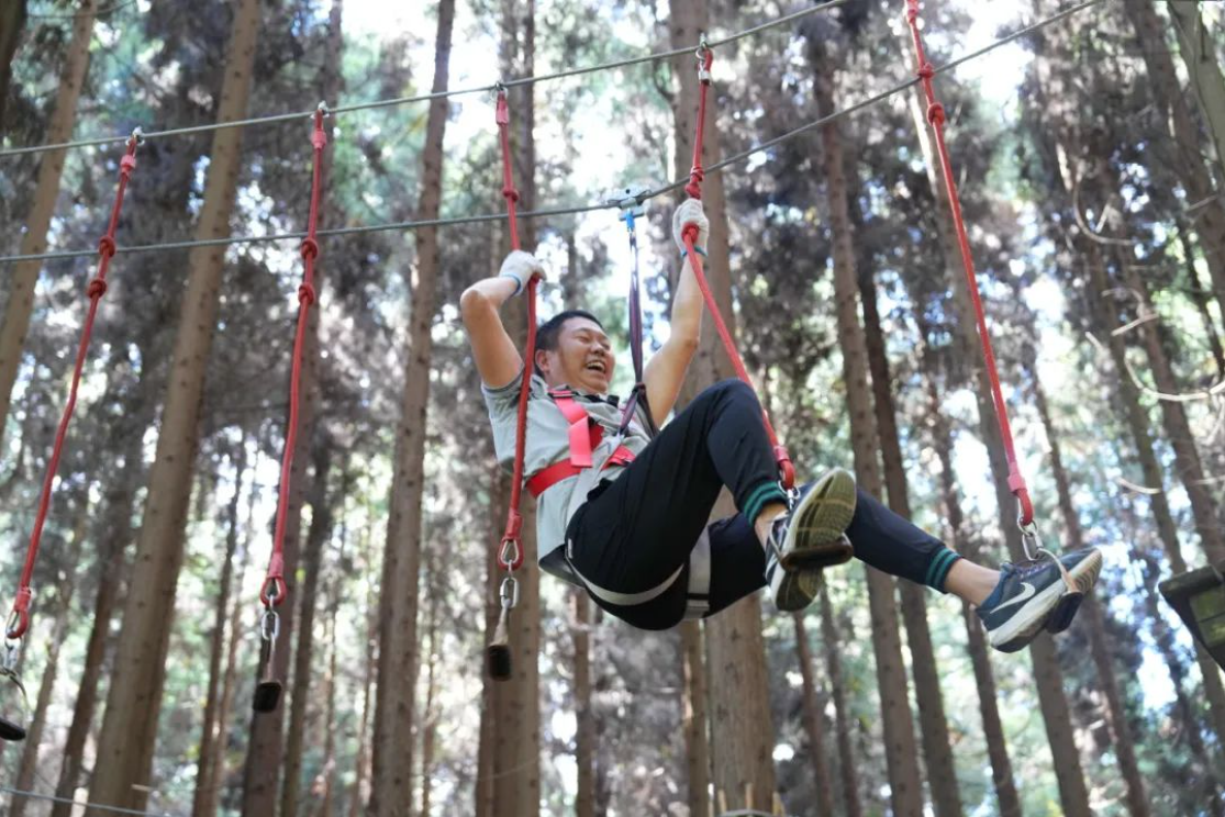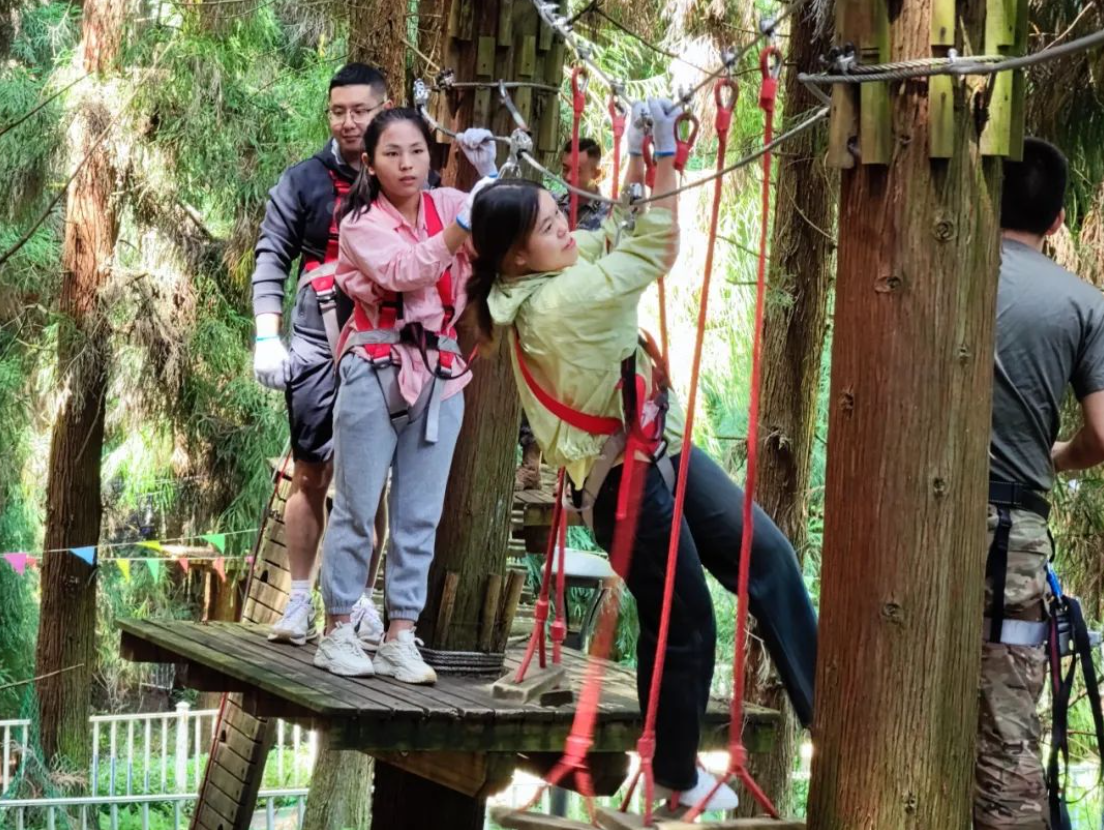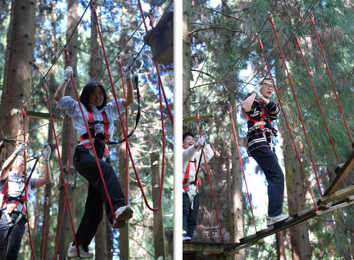 活動項目豐富多樣,現(xiàn)場氣氛歡快,活動前,工作人員向大家詳細(xì)介紹了規(guī)則和項目內(nèi)容,老師們共同商討研究,信心滿滿、蓄勢待發(fā)。破冰訓(xùn)練、彩虹滑道、叢林穿越等一系列充滿刺激挑戰(zhàn)的團(tuán)隊游戲和互動,使得教師們在愉悅的情緒下彼此更加親近。