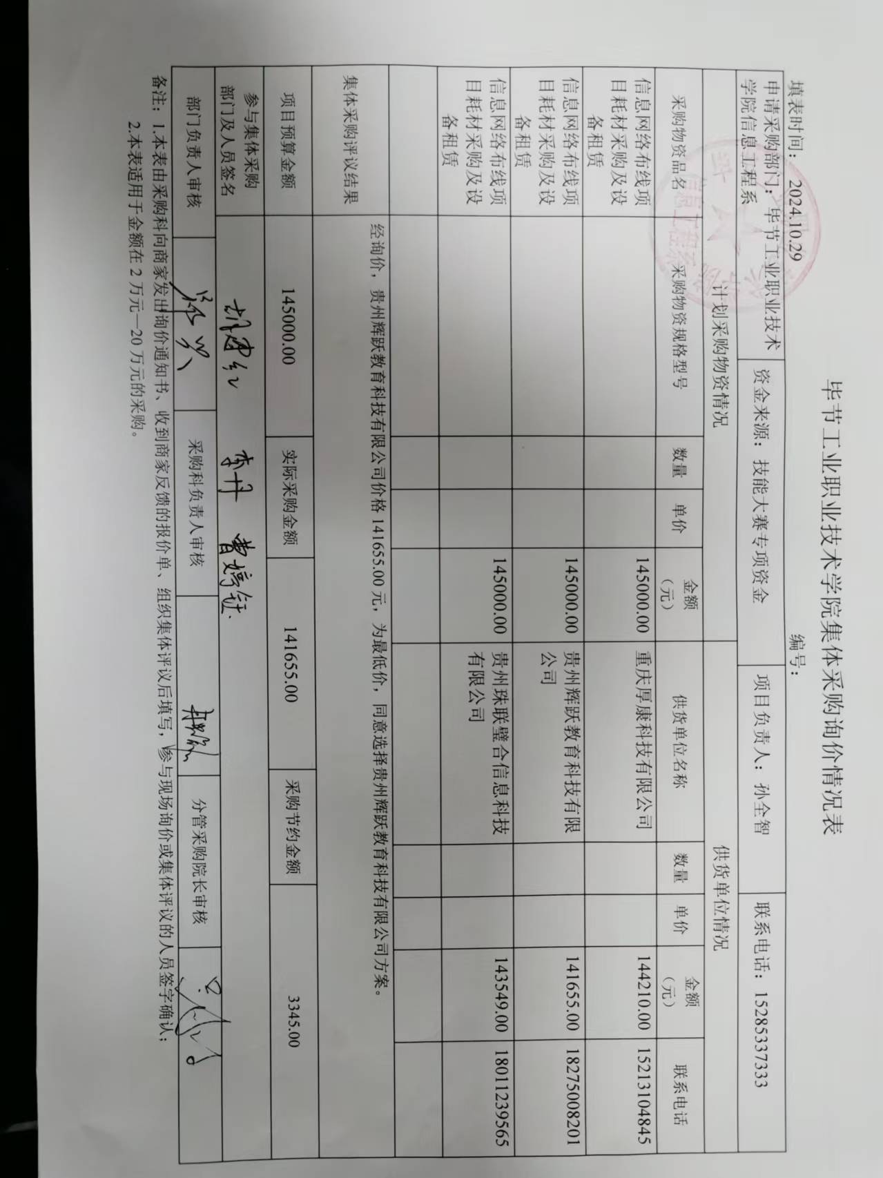 畢節(jié)工業(yè)職業(yè)技術(shù)學(xué)院信息網(wǎng)絡(luò)布線項(xiàng)目耗材采購及租賃詢價(jià)結(jié)果公示