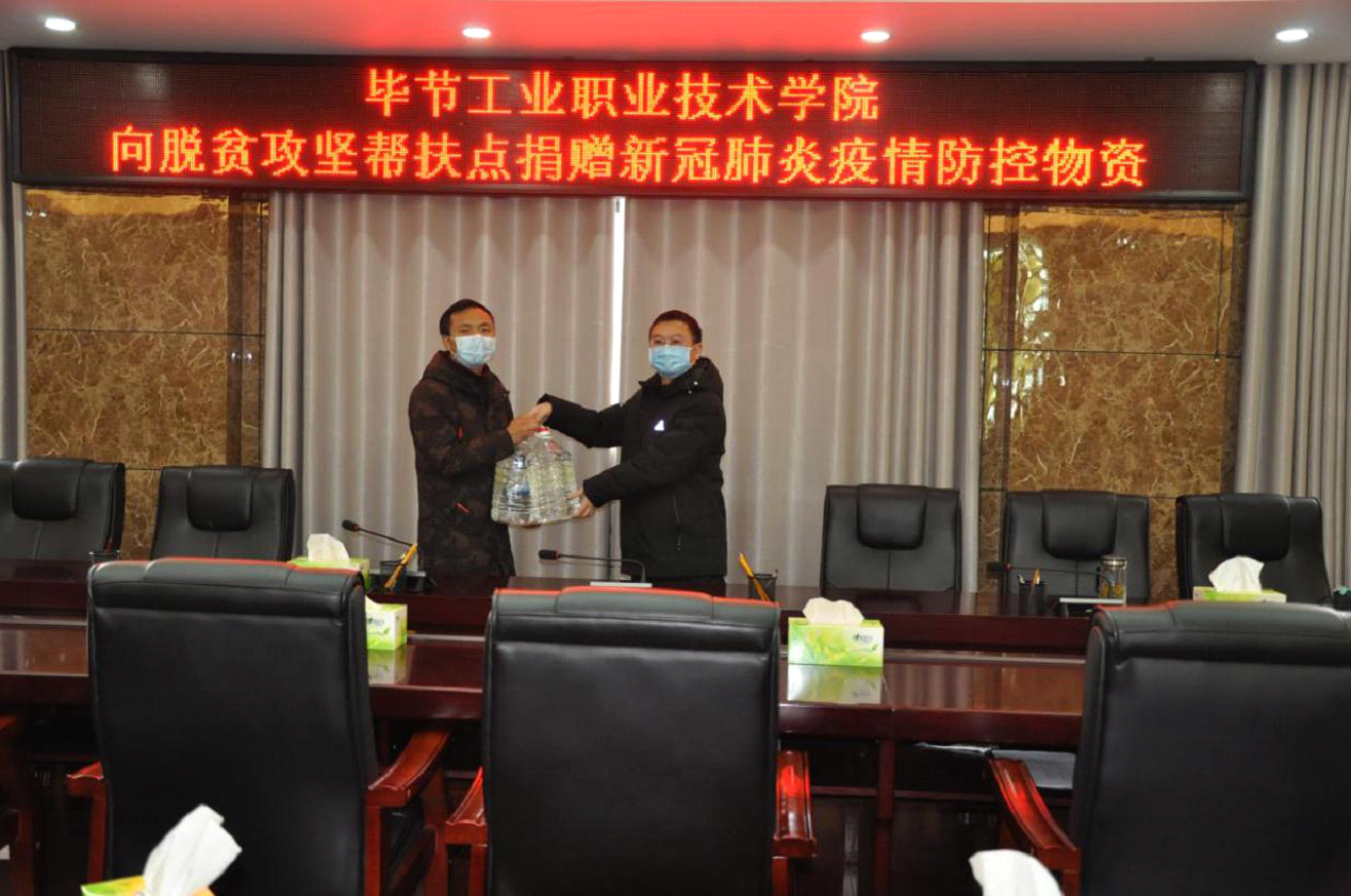 2月21日,畢節(jié)工業(yè)職業(yè)技術(shù)學(xué)院黨委委員、副院長吳家文同志代表學(xué)院向脫貧攻堅幫扶點(diǎn)安樂溪鄉(xiāng)、可樂鄉(xiāng)各捐贈醫(yī)用消毒酒精300斤。安樂溪鄉(xiāng)、可樂鄉(xiāng)工作人員對學(xué)院給予的關(guān)心和幫助致以謝意并表示學(xué)院在特殊時期向脫貧攻堅幫扶點(diǎn)捐贈新冠疫情防控物資,既體現(xiàn)了學(xué)院為助力脫貧攻堅,全面實(shí)現(xiàn)小康社會以及堅決打贏疫情防控和脫貧攻堅“兩場硬戰(zhàn)”所做的貢獻(xiàn),也充分發(fā)揮了職業(yè)院校服務(wù)社會的功能。