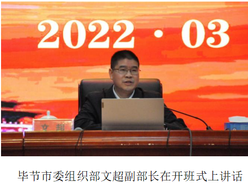 受畢節(jié)市委組織部委托,市委組織部文超副部長(zhǎng)出席了開班式并發(fā)表講話,畢節(jié)工業(yè)職業(yè)技術(shù)學(xué)院黨委委員、副院長(zhǎng)黃文碧同志主持開班式。