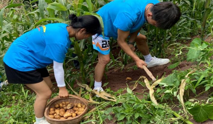 圖為點點宣傳隊幫助殘疾、空巢老人干農(nóng)活