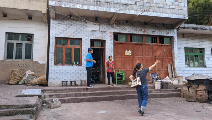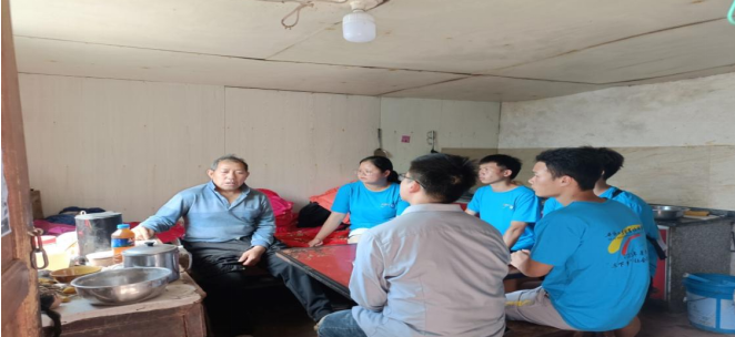 圖為指導(dǎo)老師帶著實踐小分隊對村民的住戶進行考察