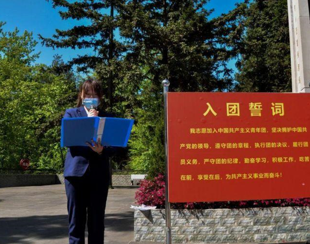 隨后,同學(xué)們面向團(tuán)旗,高舉右拳,再次重溫入團(tuán)誓詞,鏗鏘的誓言提醒著每一位團(tuán)員要牢記自己的身份與職責(zé),堅(jiān)定“不忘初心,牢記使命”的理想信念,將英雄事跡銘記于心,將艱苦奮斗的精神踐行到日常學(xué)習(xí)、工作中。