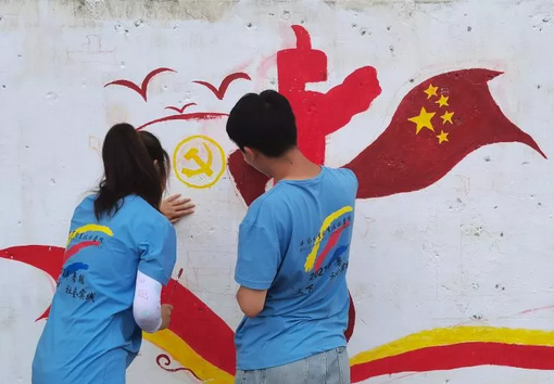 在為期10天的“三下鄉(xiāng)”社會實踐中,實踐隊員們把黨史學習教育帶到了田間地頭家中墻上。實踐隊員們走進田間地頭,和當?shù)剜l(xiāng)親們一起學習交流黨的發(fā)展歷程,到家中聆聽當?shù)亍罢稀焙屯宋槔媳⒗宵h員講述他們的親身經(jīng)歷和黨的光輝歷程并宣傳黨的政策,與鄉(xiāng)親們一起溝通鄉(xiāng)村振興的意見和建議。同時,實踐隊員們還將黨的光輝歷史和黨的政策、生態(tài)文明建設(shè)、鄉(xiāng)村振興、惠農(nóng)政策等用墻繪的方式畫在墻上?!皩嵺`隊員們通過這種樸實、接地氣、通俗易懂的方式將黨史學習教育和黨的政策送到了田間地頭、村民家中,打破了傳統(tǒng)的宣講模式,增強了廣大村民振興鄉(xiāng)村的信心?!笔敬羼v村書記明正興說。