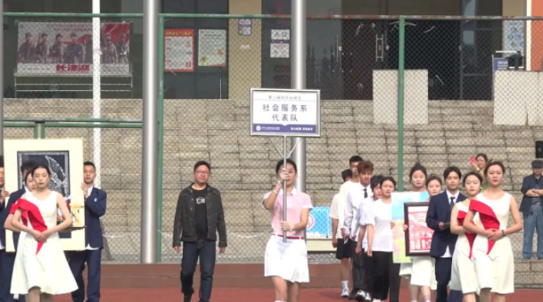 少年應(yīng)當(dāng)激情滿懷,斗志昂揚(yáng),砥礪前行。伴隨著慷慨激昂的運(yùn)動員進(jìn)行曲,學(xué)院系部方隊和運(yùn)動員、裁判員方隊依次入場。整齊矯健的步伐,各具特色的展示,博得了在場師生的陣陣掌聲。
