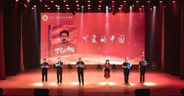 學(xué)院黨委班子成員邱國(guó)援、付善華、黃瑛、吳家文、黃河、申開(kāi)谷帶來(lái)現(xiàn)場(chǎng)誦讀表演——《可愛(ài)的中國(guó)》。