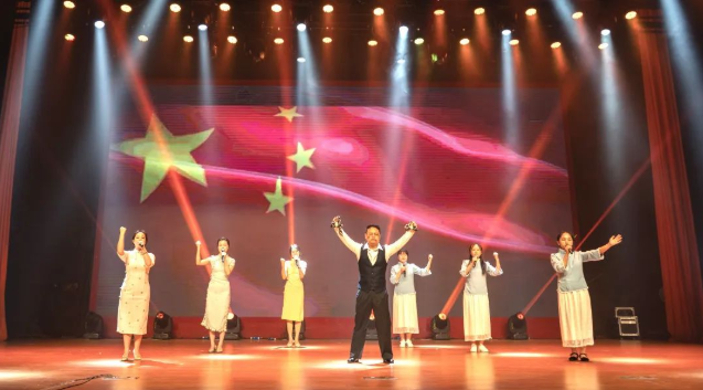 隨著嘹亮的誦讀聲響起,一段段百年紅色光影故事和傳統(tǒng)經(jīng)典佳作徐徐在觀眾面前展開(kāi)。舞臺(tái)上的誦讀者帶領(lǐng)大家重溫中國(guó)共產(chǎn)黨的革命故事,感受黨的光輝和革命英雄的壯志;重溫中國(guó)古代優(yōu)秀經(jīng)典,在詩(shī)歌的陶冶下怡情悅性,奮發(fā)向上,禮贊不朽芳華。
