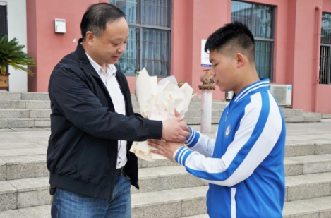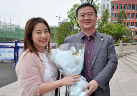 (院領(lǐng)導(dǎo)為獲獎師生獻花)
