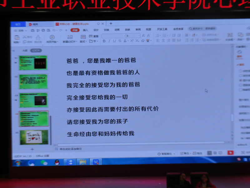 首先,周靜老師分享了兩位學(xué)長、學(xué)姐的故事,以他們曾經(jīng)的努力和今天的成功為例,告訴同學(xué)們職業(yè)教育的重要性和職業(yè)規(guī)劃的必要性,讓學(xué)生意識到只有保持積極健康的心態(tài),才能更輕松愉快的面對學(xué)習(xí)和生活。
