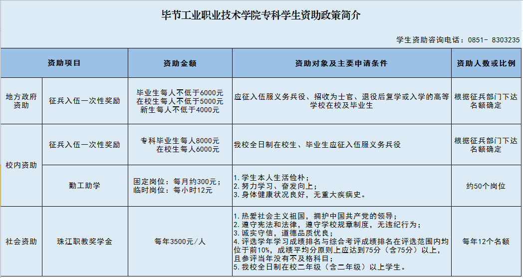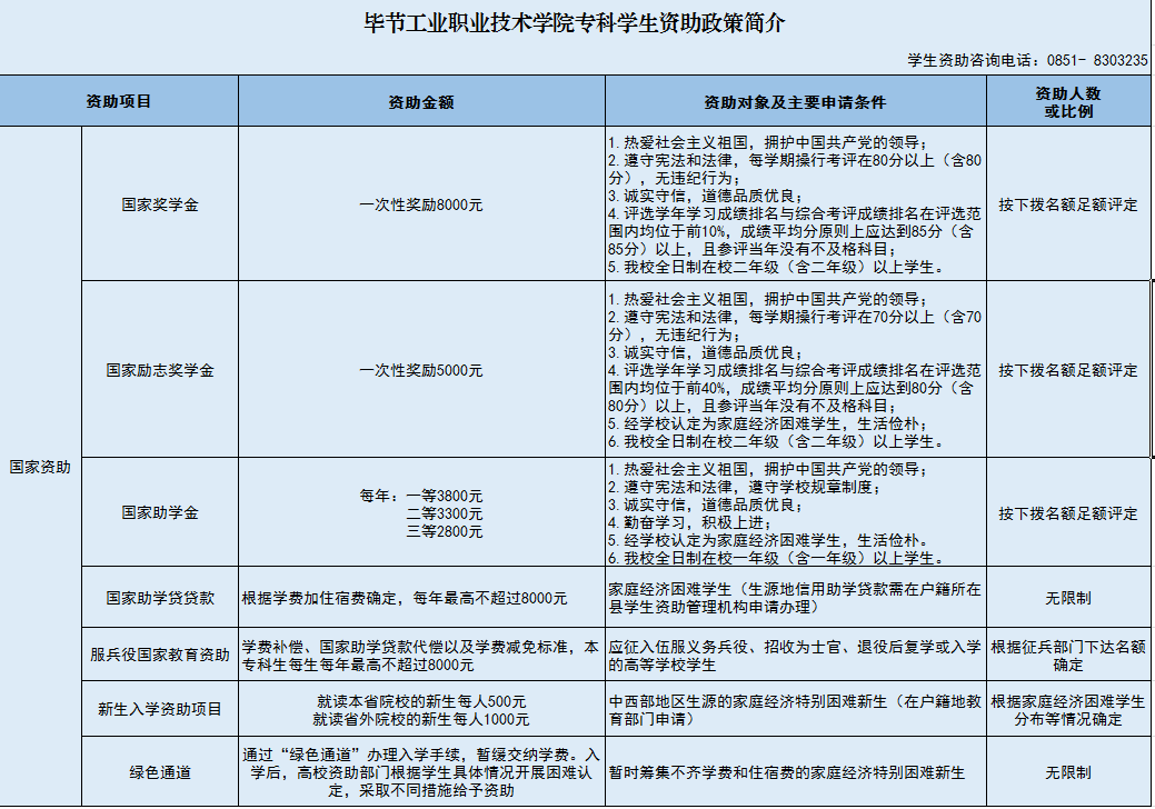 畢節(jié)工業(yè)職業(yè)技術(shù)學(xué)院專科學(xué)生資助政策簡(jiǎn)介